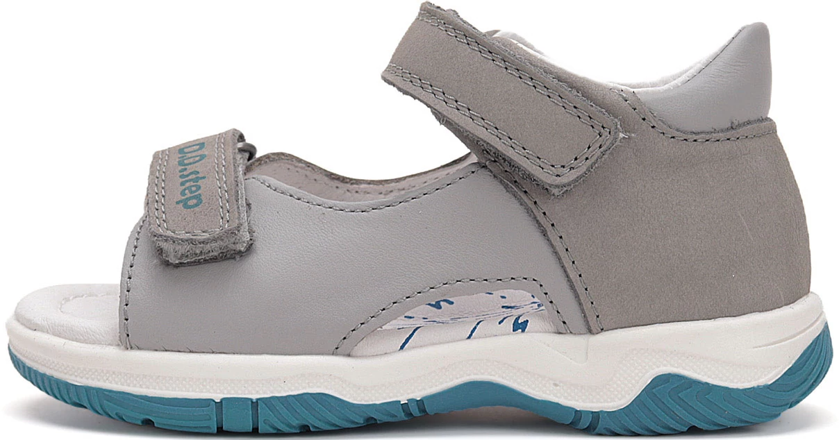 DD Step fiú valódi bőr gyerekszandál szürke színben