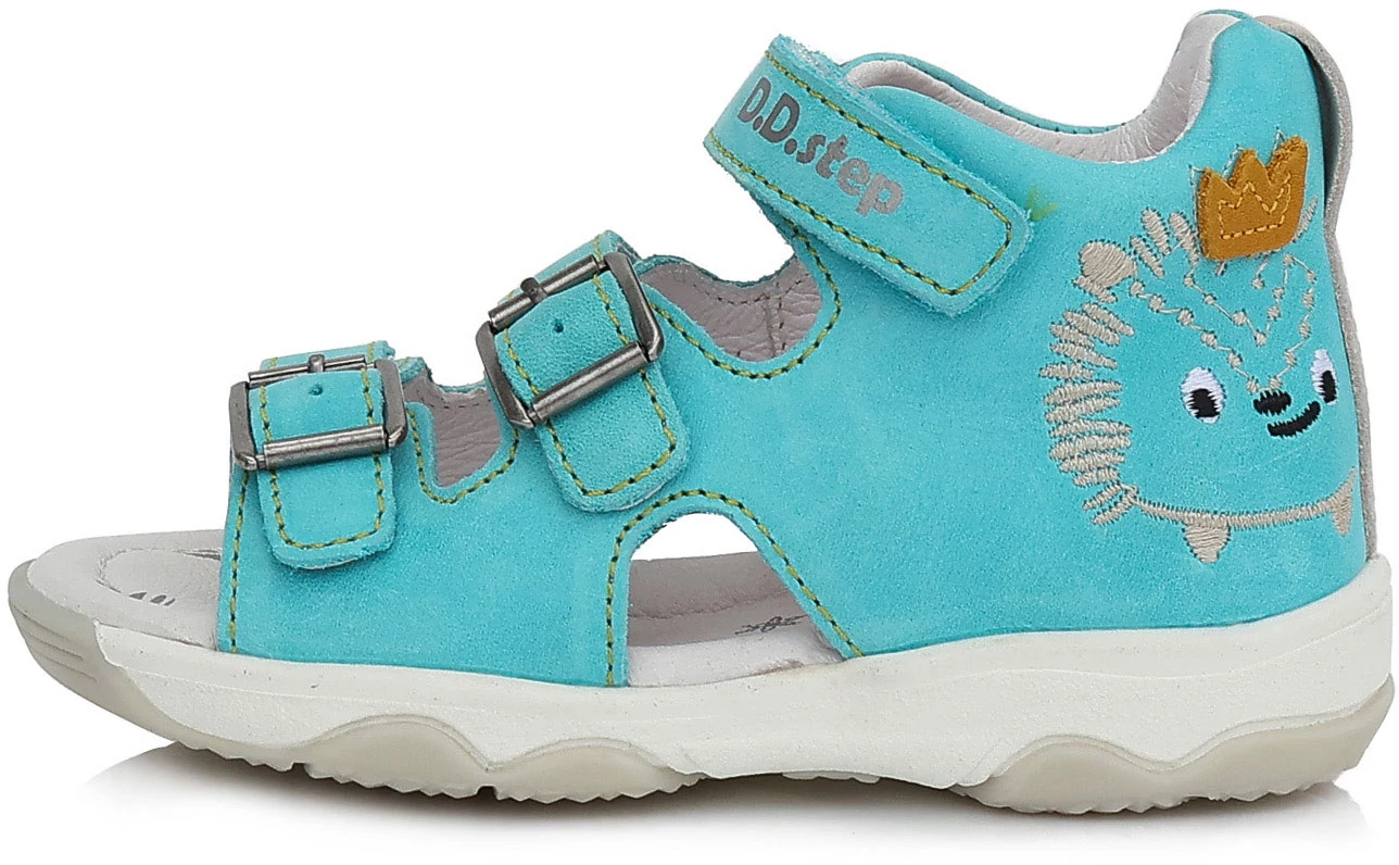 D.D.Step fiú valódi bőr gyerekszandál hímzett mintával kék színben