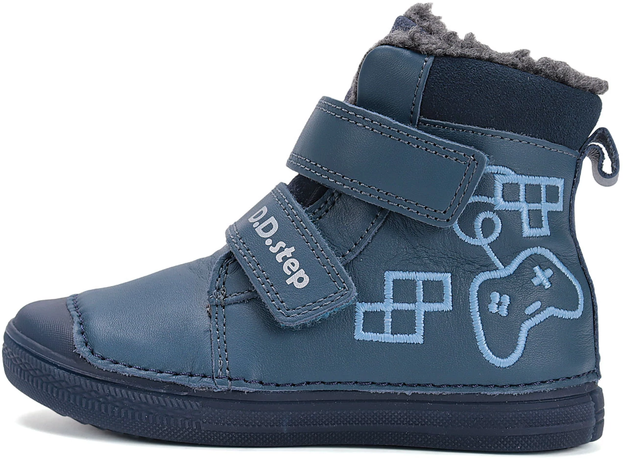 A D.D.Step egy kiváló minőségű, meleg bélelt téli gyerekcipő, amely a hideg hónapokra készült. Természetes bőr felsőrésze vízlepergető bevonatot kapott, így hatékonyan védi a lábat a nedvességtől és a hidegtől. A puha, meleg bélés és a kivehető, szőrös talpbetét gondoskodik a maximális kényelemről és hőszigetelésről.A hajlékony, csúszásmentes talp biztosítja a stabil járást, a megerősített orr- és sarokrész pedig védi a lábat a mindennapi használat során. Két tépőzáras pánttal könnyen és gyorsan fel- és levehető, a magasabb lábfejű gyerekek számára is kényelmes viselet.