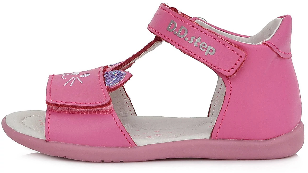 D.D.Step lány valódi bőr gyerekszandál cica mintával rózsaszín színben