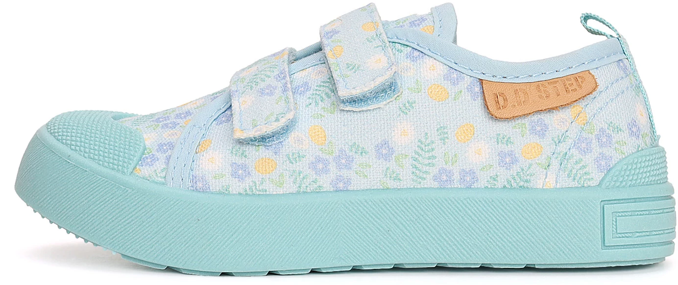 DDStep lány két tépőzáras vászon gyerekcipő kék színben virág mintával