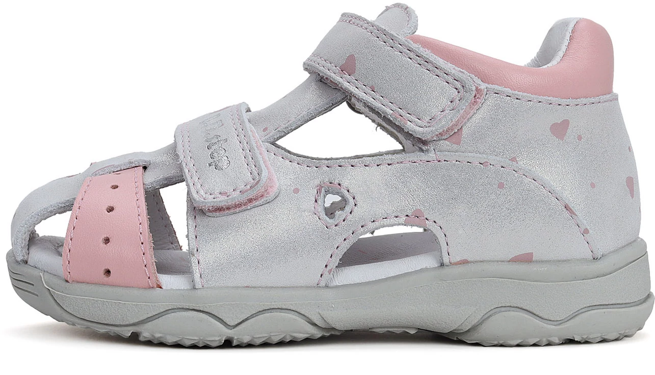 DD Step lány valódi bőr két tépőzáras zártorru gyerekszandál ezüst színben