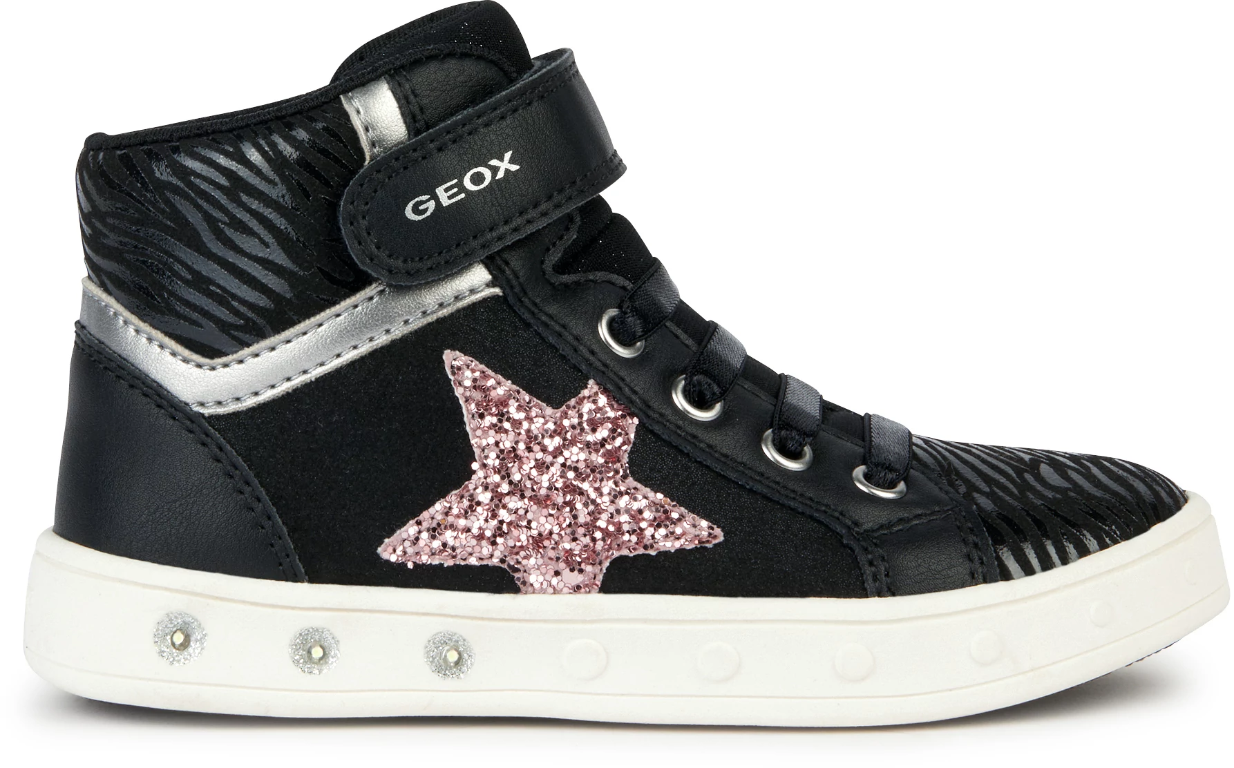 Geox lány valódi bőr átmeneti gyerekcipő lélegző talpon kikapcsolható LED díszítéssel