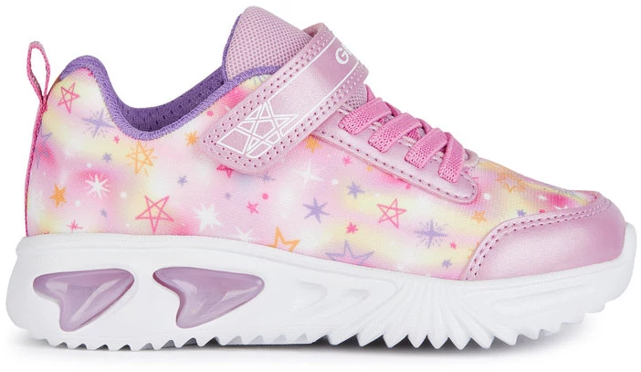Geox lány tépőzáras átmeneti gyerekcipő lélegző talpon lila színben kikapcsolható LED díszítéssel csillag mintával