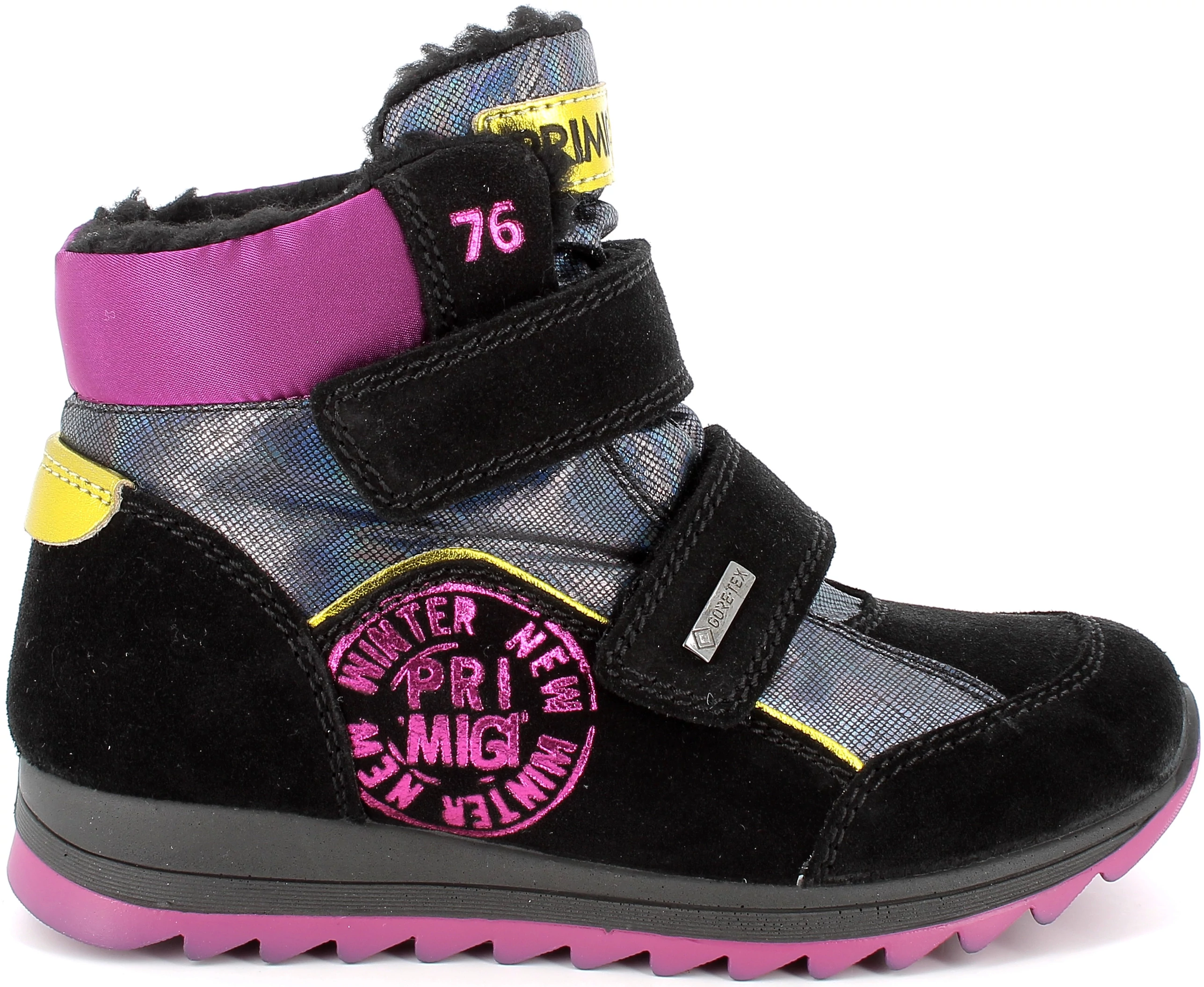 Primigi lány fekete-lila két tépőzáras Gore-Tex vízálló téli bélelt hótaposó csizma