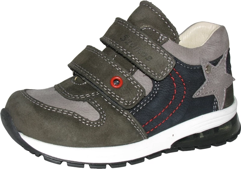 Szamos fiú kék - szürke valódi bőr átmeneti gyerekcipő csillag mintával LED világÍtó talpon