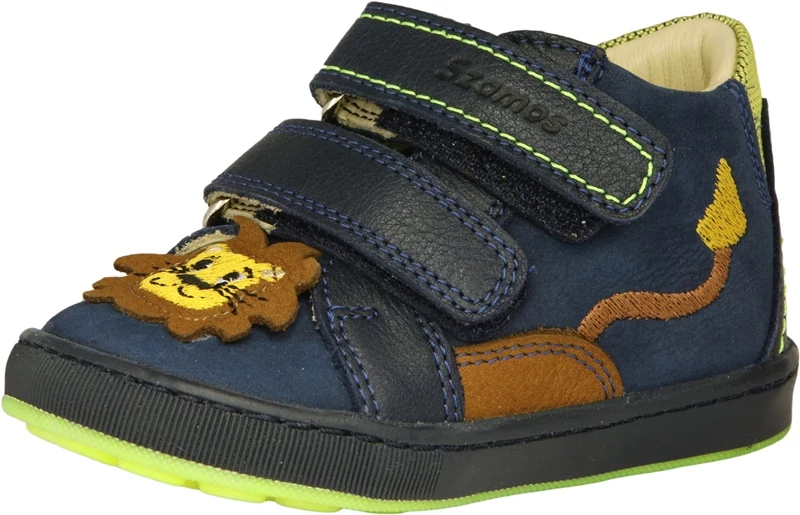 Szamos fiú két két tépőzáras valódi bőr gyerekcipő oroszlán mintával kék színben