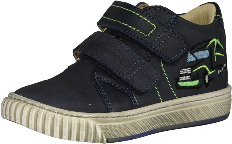 Szamos fiú valódi bőr átmeneti gyerekcipő hímzett kamion mintával kék színben