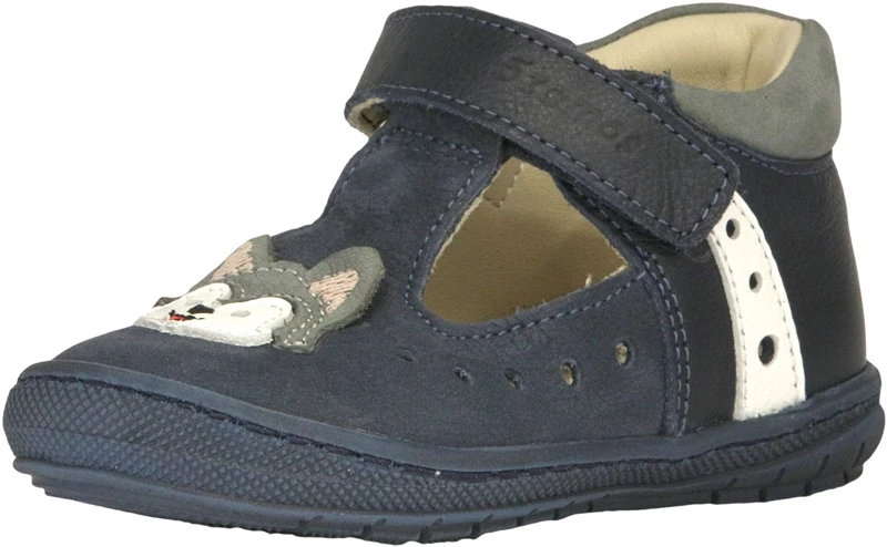 Szamos fiú valódi bőr nyitott gyerekcipő kutyus mintával kék színben