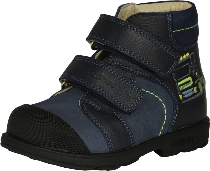 Szamos fiú supinált valódi bőr átmeneti gyerekcipő kék színben kamion mintával