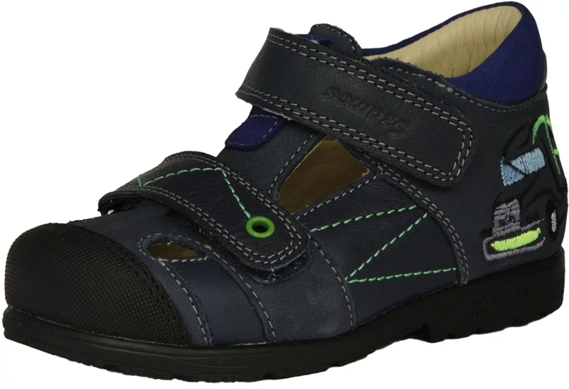 Szamos fiú supinált valódi bőr nyitott gyerekcipő hímzett kamion mintával kék színben