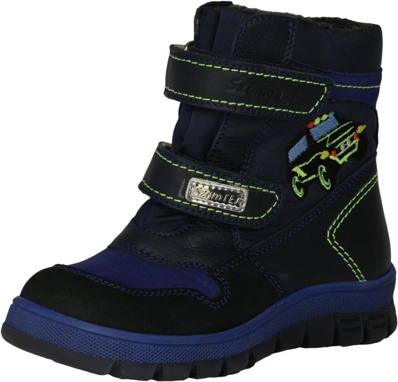 Szamos valódi bőr Szam-tex vízálló téli bélelt gyerekcipő kék színben fiúk számára