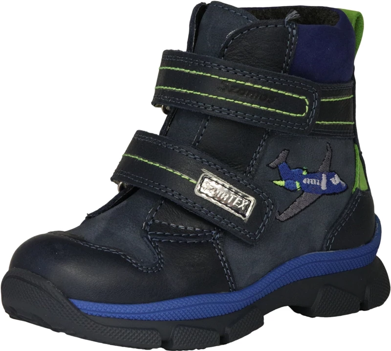 Szamos valódi bőr Szam-tex vízálló téli bélelt gyerekcipő kék színben fiúk számára