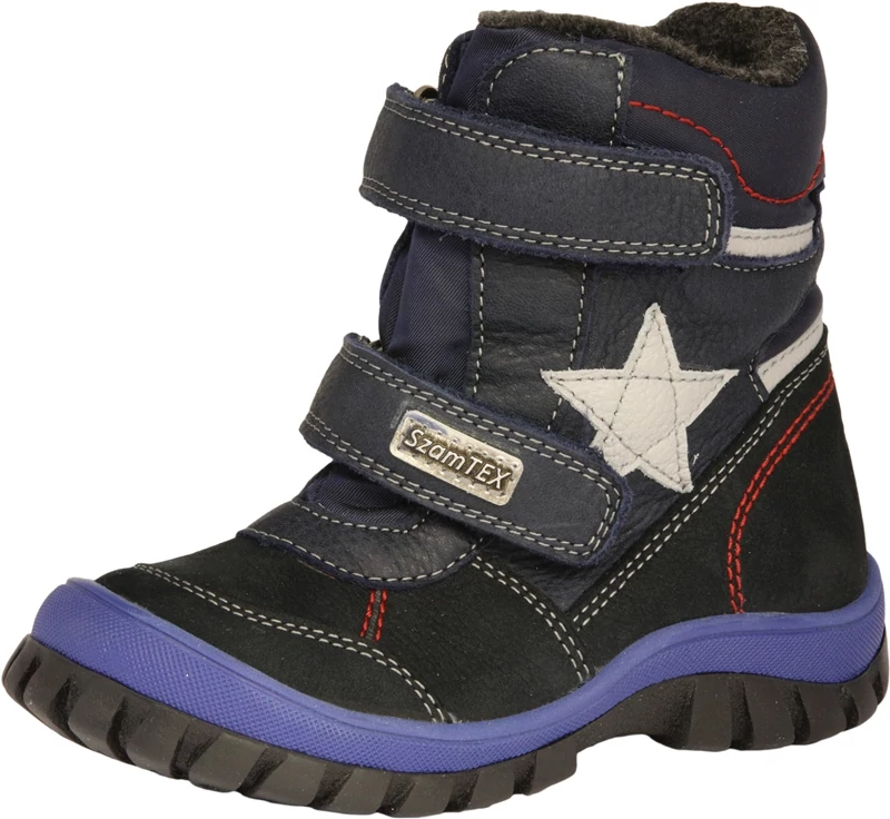 Szamos fiú kék két tépőzáras valódi bőr téli bélelt vízálló gyerekcipő csillag mintával