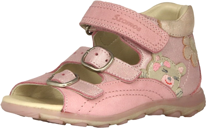 Szamos lány valódi bőr gyerekszandál rózsaszín színben maci mintával