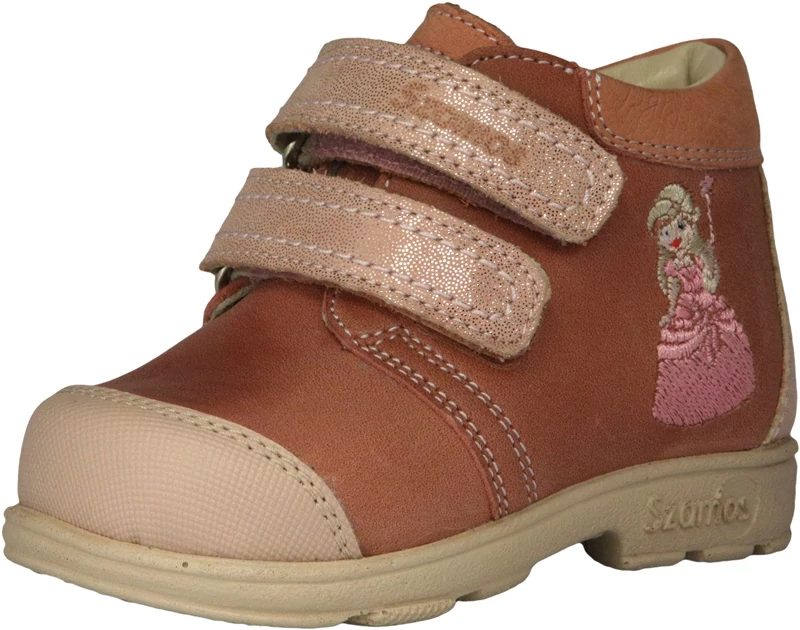 Szamos supinált lány valódi bőr átmeneti gyerekcipő mályva színben hímzett hercegnő mintával