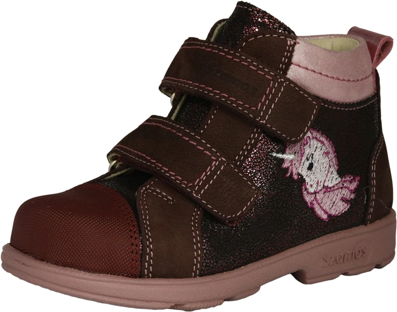 Szamos lány supinált valódi bőr átmeneti gyerekcipő málna színben hímzett unikornis mintával