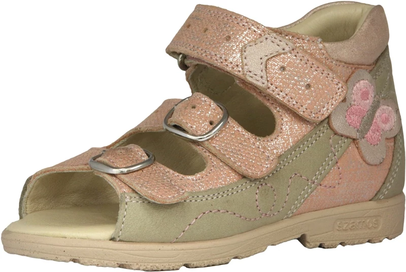 Szamos supinált lány valódi bőr gyerekszandál pillangó mintával rózsaszín színben