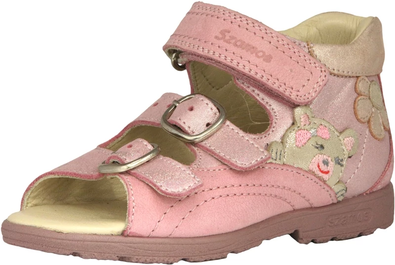 Szamos lány supinált valódi bőr gyerekszandál maci mintával rózsaszín színben