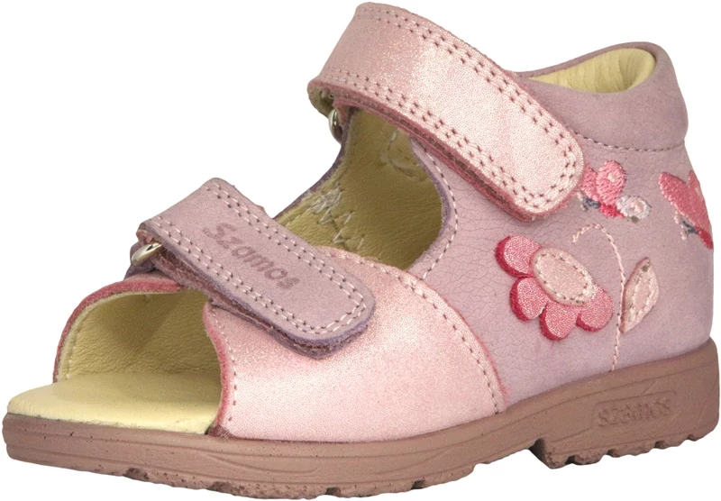 Szamos supinált lány valódi bőr gyerekszandál hímzett virág mintával rózsaszín színben