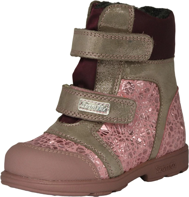 Szamos supinált valódi bőr Szam-tex vízálló téli bélelt gyerekcipő rózsaszín színben lányok számára