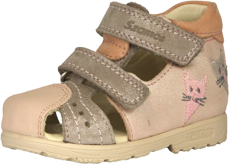 Szamos lány supinált valódi bőr zártorru gyerekszandál hímzett cica mintával barack színben