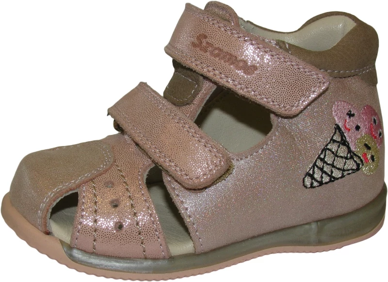 Szamos lány tépőzáras valódi bőr zártorru gyerekszandál hímzett fagyi mintával barack színben