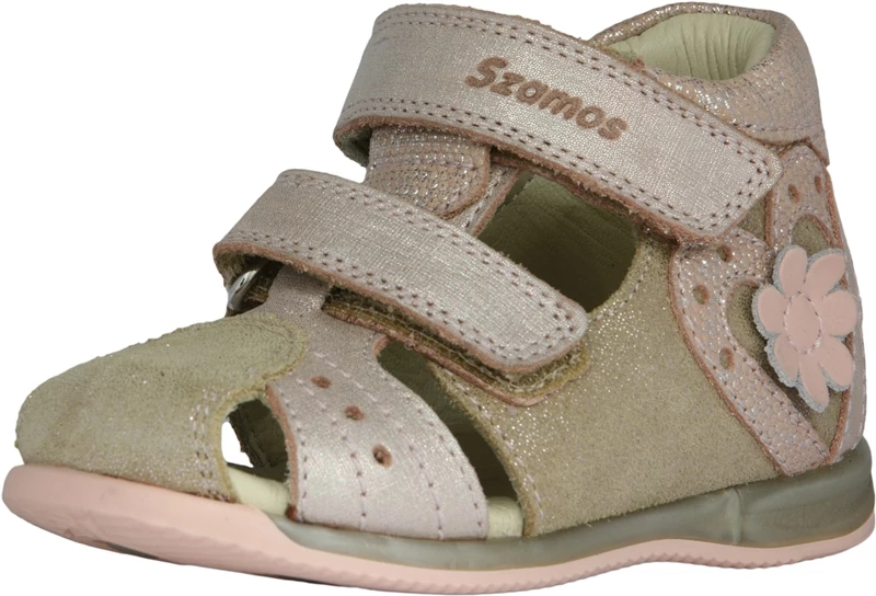 Szamos lány két tépőzáras valódi bőr zártorrú gyerekszandál virág mintával barack színben
